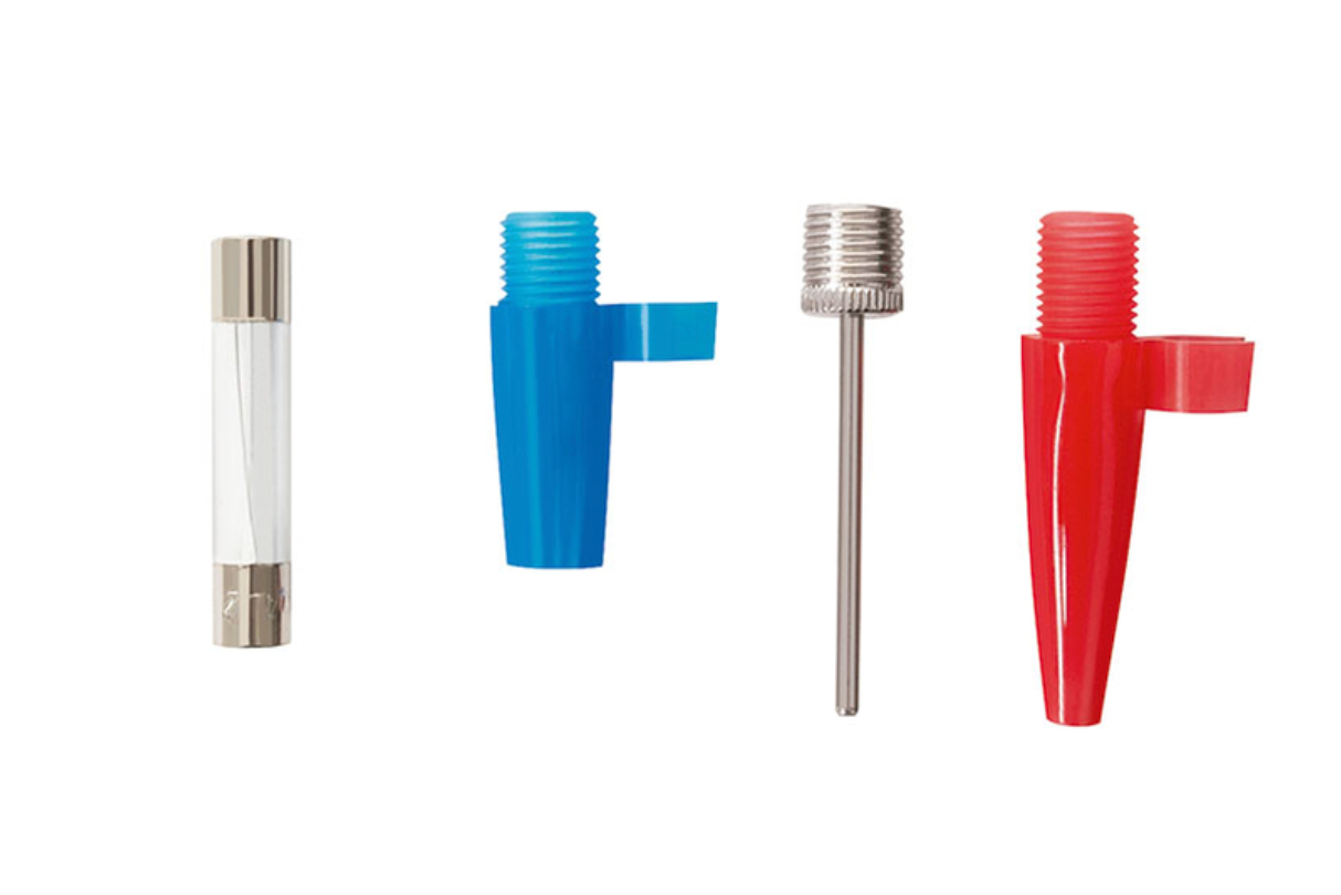 Incluye un juego de 3 accesorios y un fusible, ofreciendo mayor versatilidad. Su tiempo de inflado es de aproximadamente 4 minutos y 30 segundos (neumático 195/55 R15) y trabaja con una presión máxima de 150 PSI.