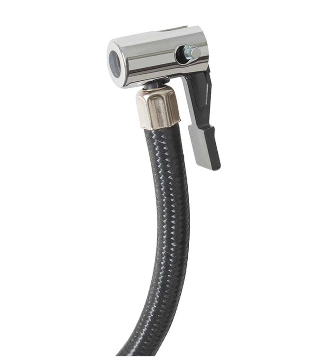 Cuenta con manómetro digital para un control exacto de la presión y sistema Auto Stop, que detiene automáticamente el inflado al alcanzar la presión prefijada, garantizando seguridad y comodidad. Incorpora además luz LED de emergencia, facilitando su uso en condiciones de poca visibilidad.